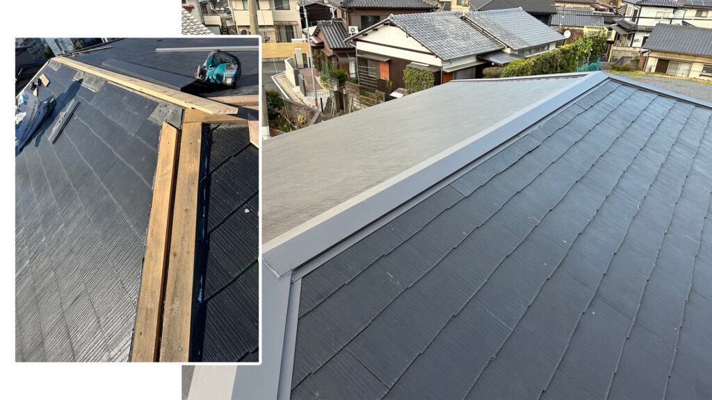 | 内容 | 雨漏りの原因である屋根板金の交換工事 |